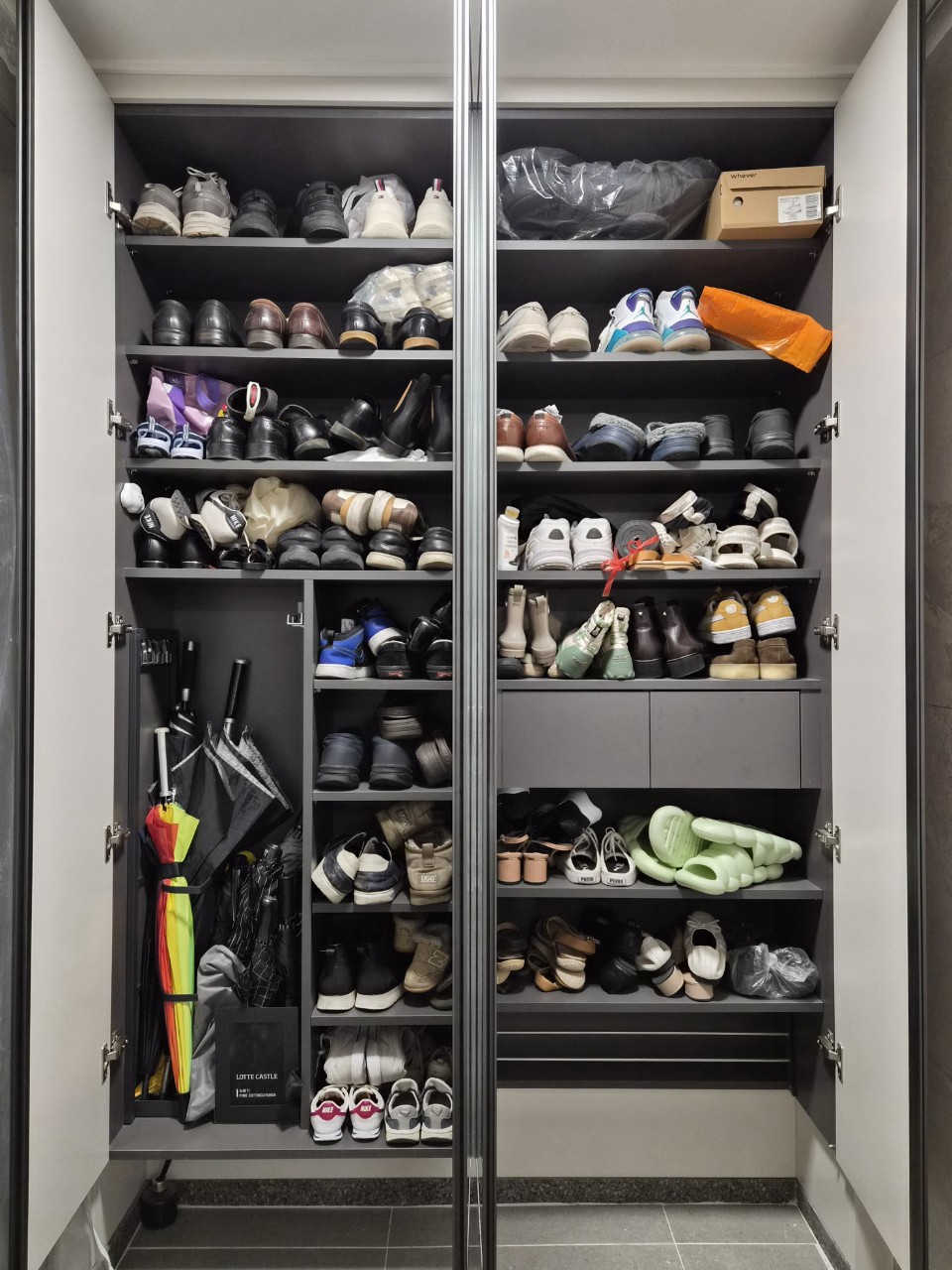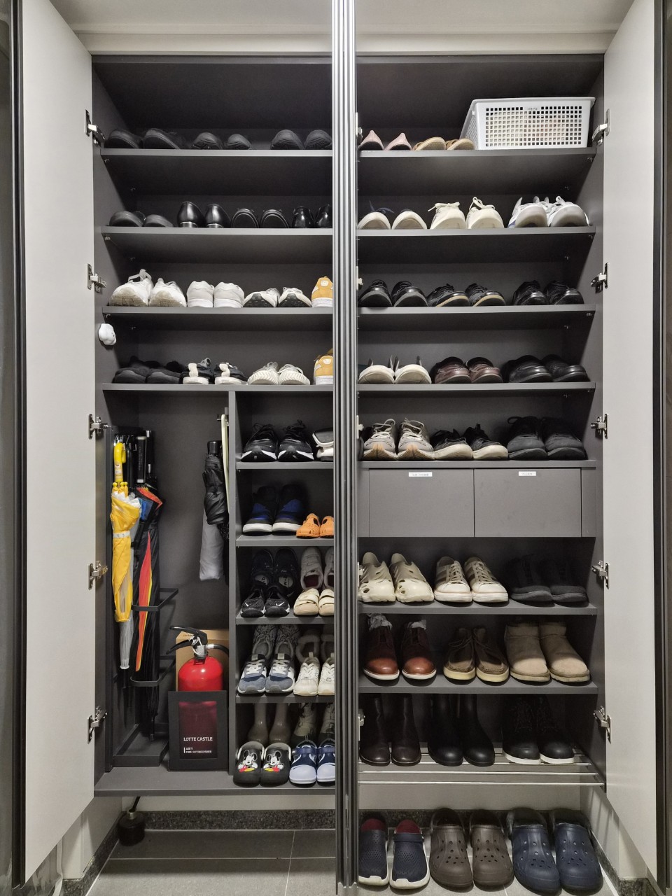 키가 작은 아이 신발은 하단, 중간은 엄마, 높은 곳은 아빠 신발을 넣어주면 가족 모두 사용하기 편하고요.
